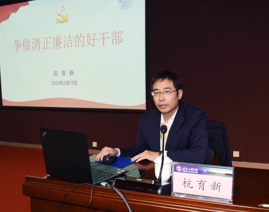 19日下午,南京航空航天大学党委副书记、纪委书记杭育新作了题为《争做清正廉洁的好干部》专题报告,报告围绕党史中的纪律、腐败与反腐败、高校中的腐败与反腐败、争做清正廉洁的好干部四大方面,结合大量真实案例,引导与会干部充分认识提高党性修养的重要意义,自觉形成廉洁自律意识,不负组织重托和师生期待。与会人员还集体观看了廉政警示教育宣传片。
