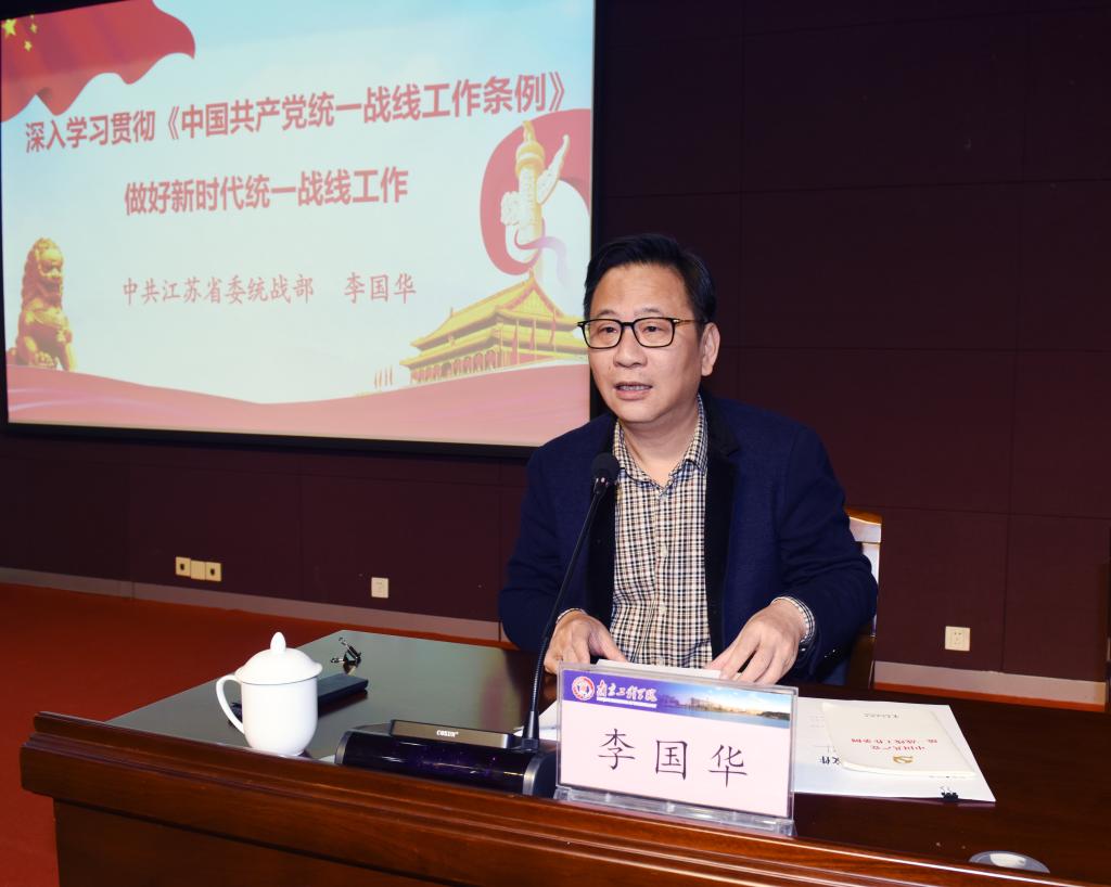 18日下午,江苏省委统战部常务副部长李国华作《贯彻落实统战工作条例,做好新时代统一战线工作》专题报告。他围绕《条例》修订的背景和意义,统战工作的重要地位和作用,统战工作的原则、主要任务和着力点,以及如何扎实抓好《条例》的贯彻落实五个方面,对《条例》进行了深入解读。李部长的报告让与会干部充分认识到做好新时代统战工作任重道远。