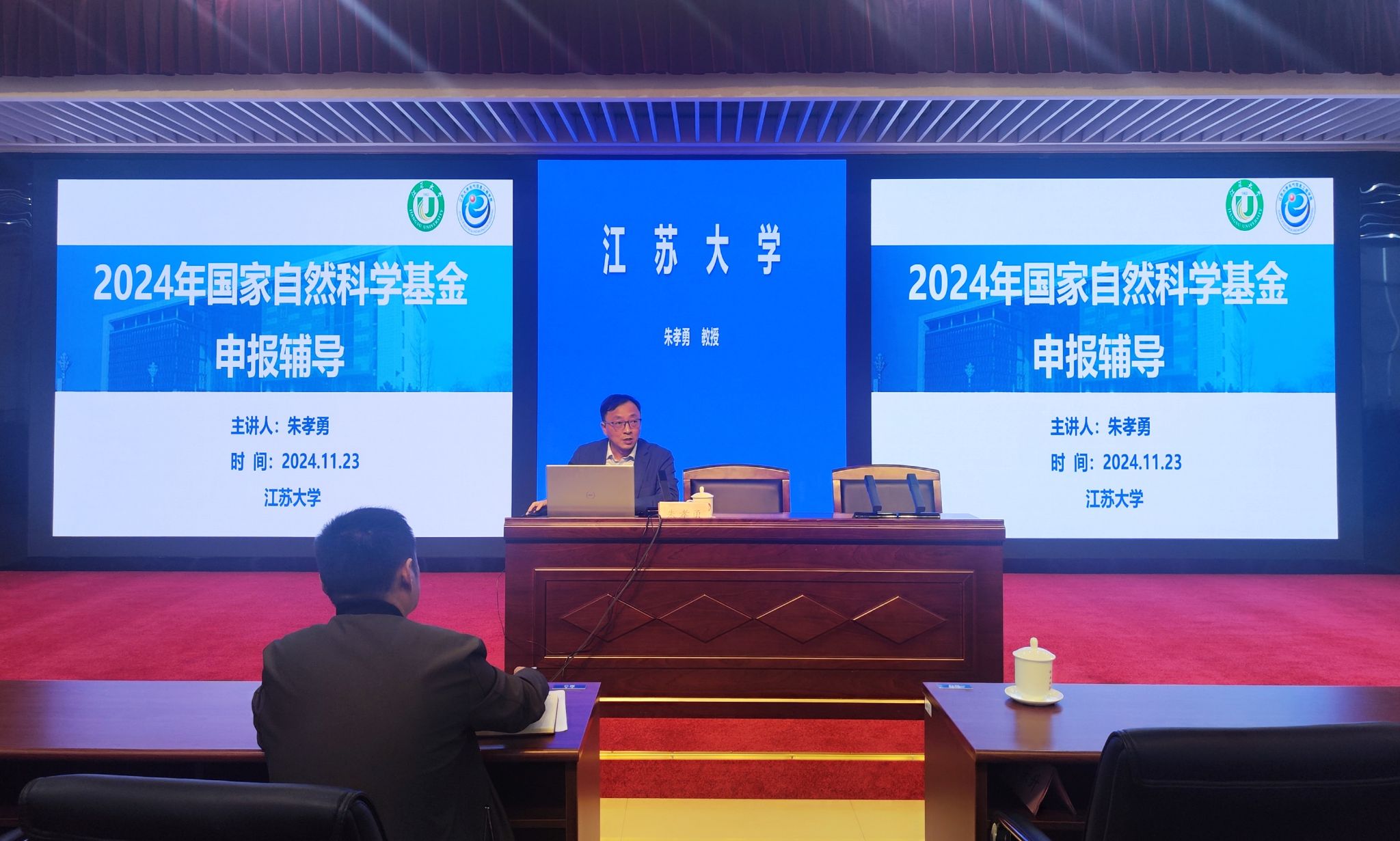 会议邀请到江苏大学朱孝勇教授作题为“国家自然科学基金申报辅导”的专题报告。他根据自己丰富的申报经验,结合申报人和评审专家的角度,从新形势自然基金申请政策导向、学术发展与基金申请内在关系、基金选题与高质量申报书撰写等方面,分析了近年来国基申报政策的变化,强调了申报国基对于青年教师发展的重要意义。他还围绕基金选题、摘要、立项依据、研究内容、研究目标、拟解决的关键科学问题、研究方案与技术路线、可行性分析、研究基础等方面重点讲解了如何精心打磨申报书,如何提高申报书质量。