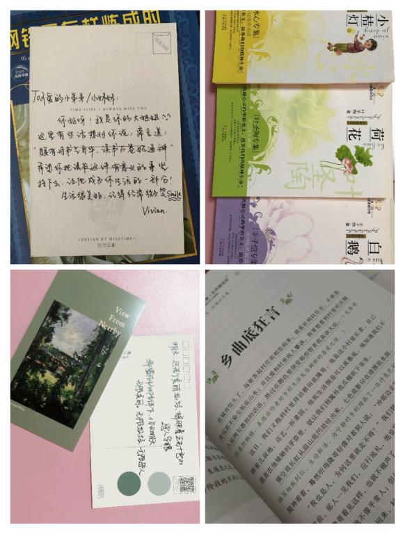 “以书为媒,用爱相陪”,在公益捐书活动中,同学们将捐献的书籍赠予与学院建立暑期社会实践基地的河南翟楼小学。《三国演义》《西游记》《朝花夕拾》《假如给我三天光明》《十万个为什么》《窗边的小豆豆》……同学们精心挑选了适合6-16岁中小学生阅读的儿童文学类书籍、名著、杂志,这些书籍都自己收藏多年的宝贝。同时,捐赠者制作了精美的图书漂流卡或书信。“愿你是风,鼓起白色的帆;愿你是船,剪开蓝色的波澜。”“现在春光明媚,是努力的时候,为了更美好的将来,拥抱更美好的明天,努力吖!”同学们手写的每一句话都是对孩子们的祝愿与鼓励。
