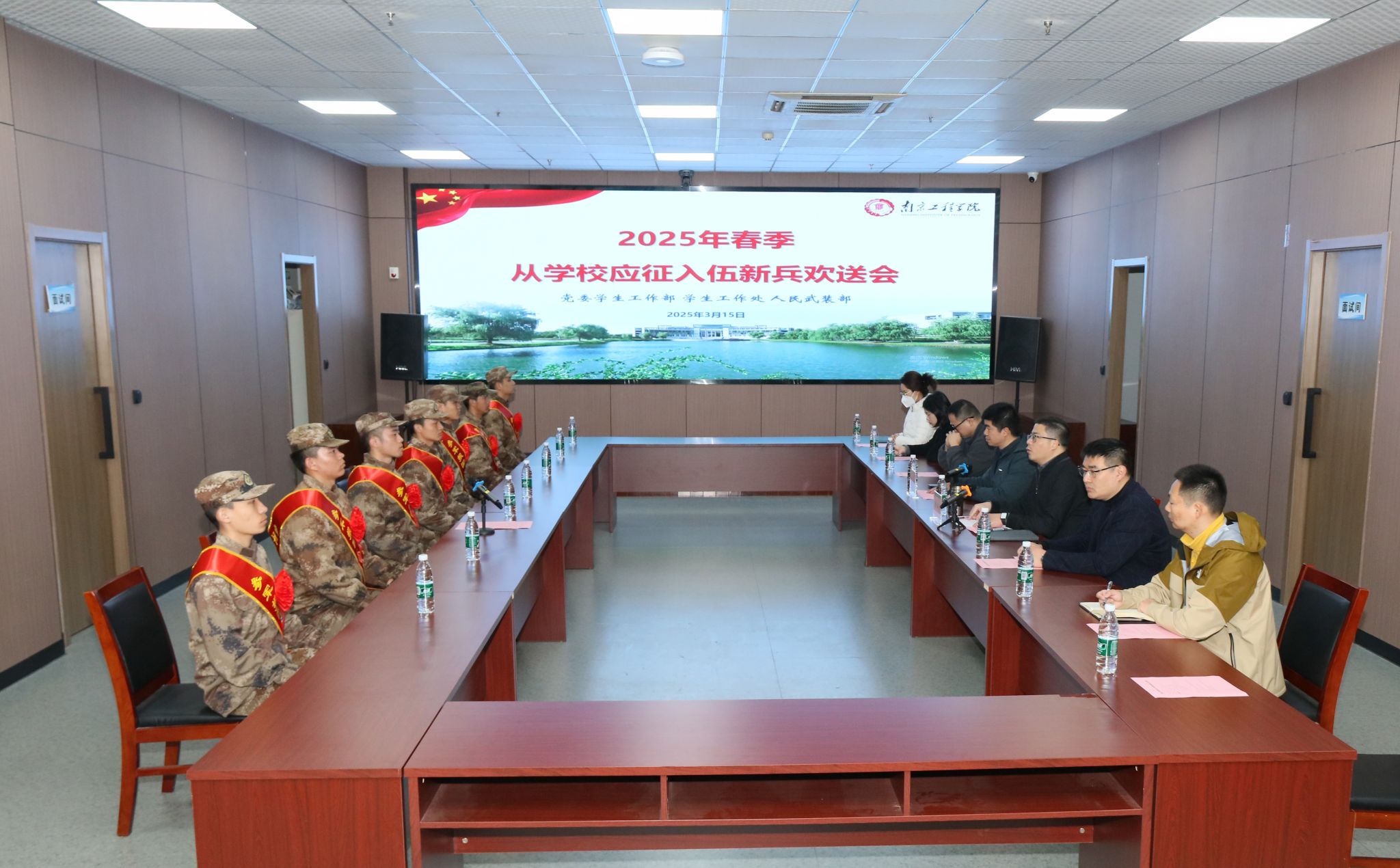 3月15日上午,人民武装部举行2025年春季从凯发应征入伍新兵欢送仪式,7名新兵身着戎装、胸戴红花,踏上军营征程。从凯发应征入伍新兵及其所在学院学生工作负责人、辅导员,人民武装部全体工作人员参加欢送仪式。