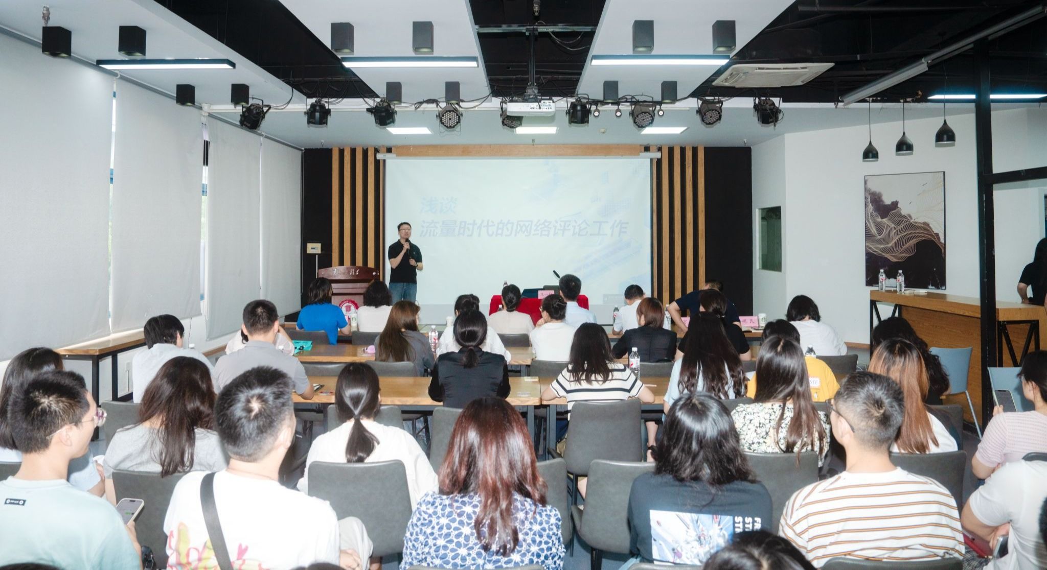 会前,常晓岚一行参观了大学生创业园“天印梦工场”。省委网信办网络社会工作处三级调研员王一轩作专题辅导报告,双方党支部全体同志,各职能部门、二级学院相关工作负责人、教师通讯员与会学习。培训内容既有基础理论讲解,又有实战案例分析,通过大量鲜活的案例,深入剖析了网评作品创作的写法要求,丰富了大家的理论实践知识,具有很强的指导性和针对性。