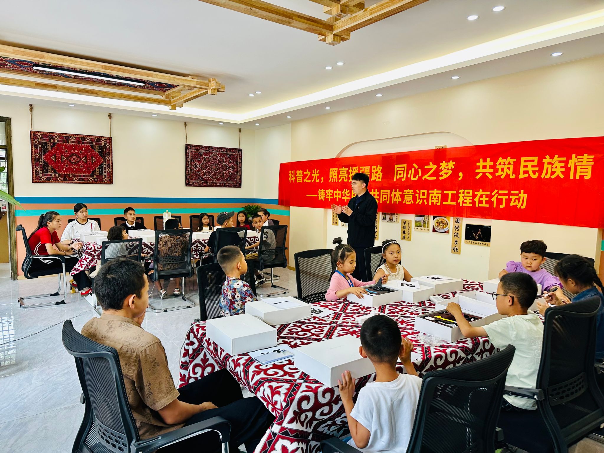 此外,党委统战部还联合苏青合伙人、南京市青年大学生创客商会爱心企业,向特克斯县少年儿童捐赠了反斗机器人、科教航模、爱心书包、打印笔等价值数十万元的科普物资,并表示将持续建立长效帮扶机制,将更多优质科教资源输送到新疆地区。